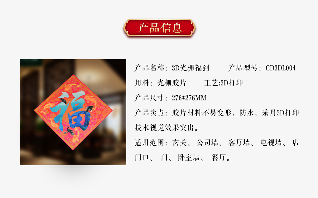 3D福字烫金珲春门贴