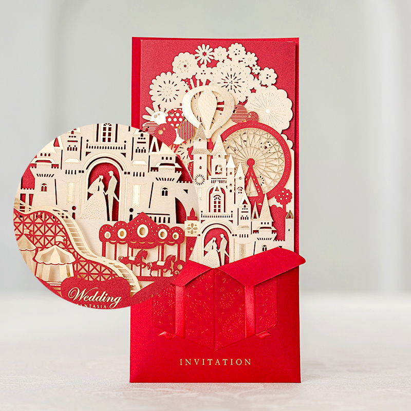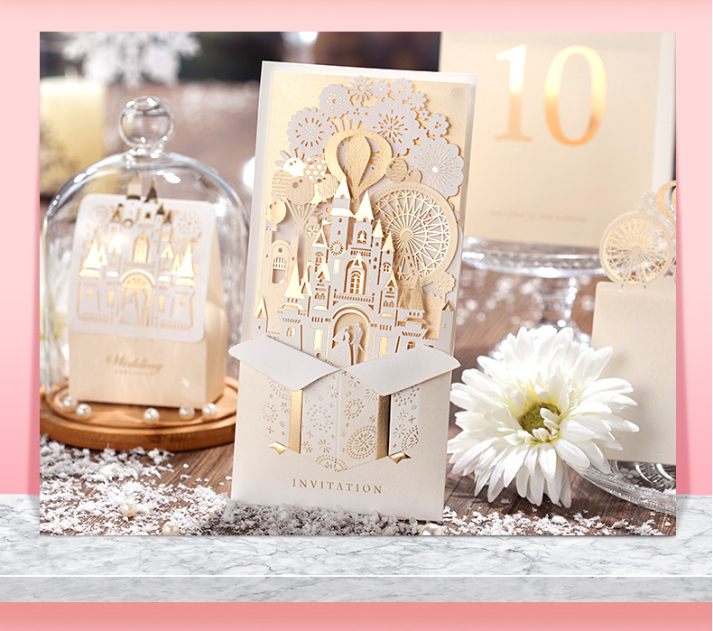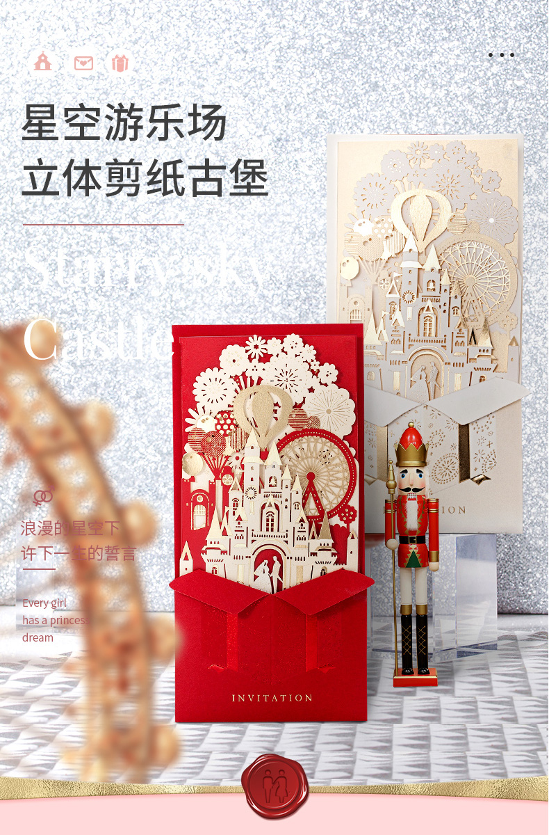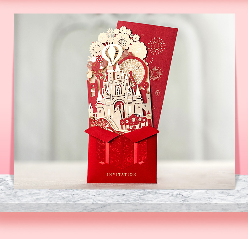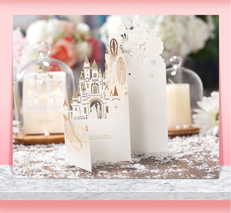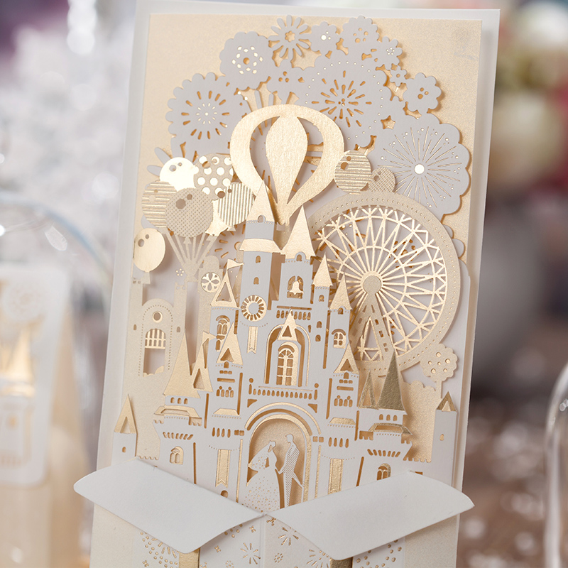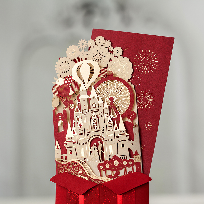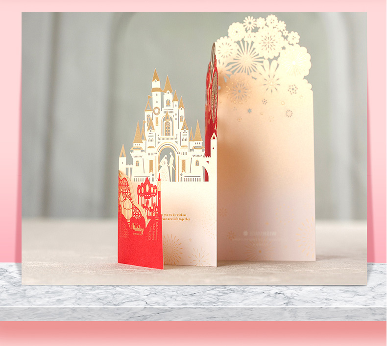 立体城堡烫金婚礼请柬