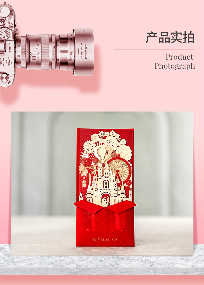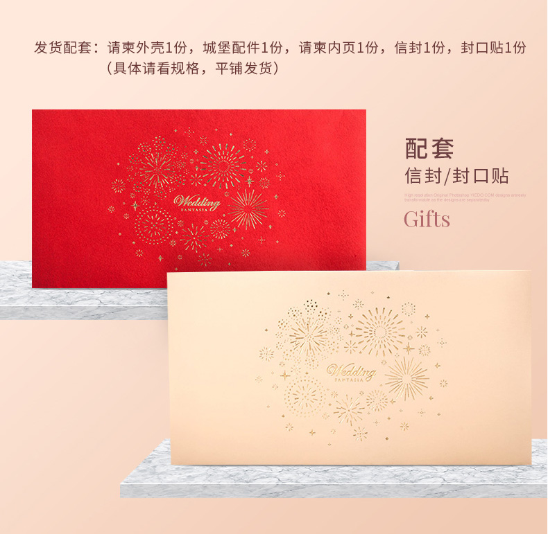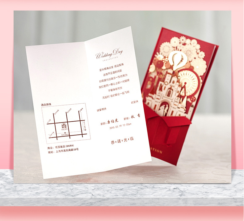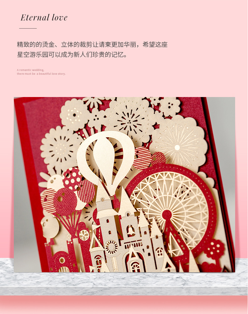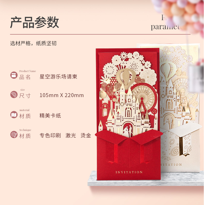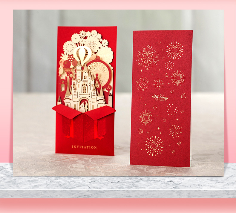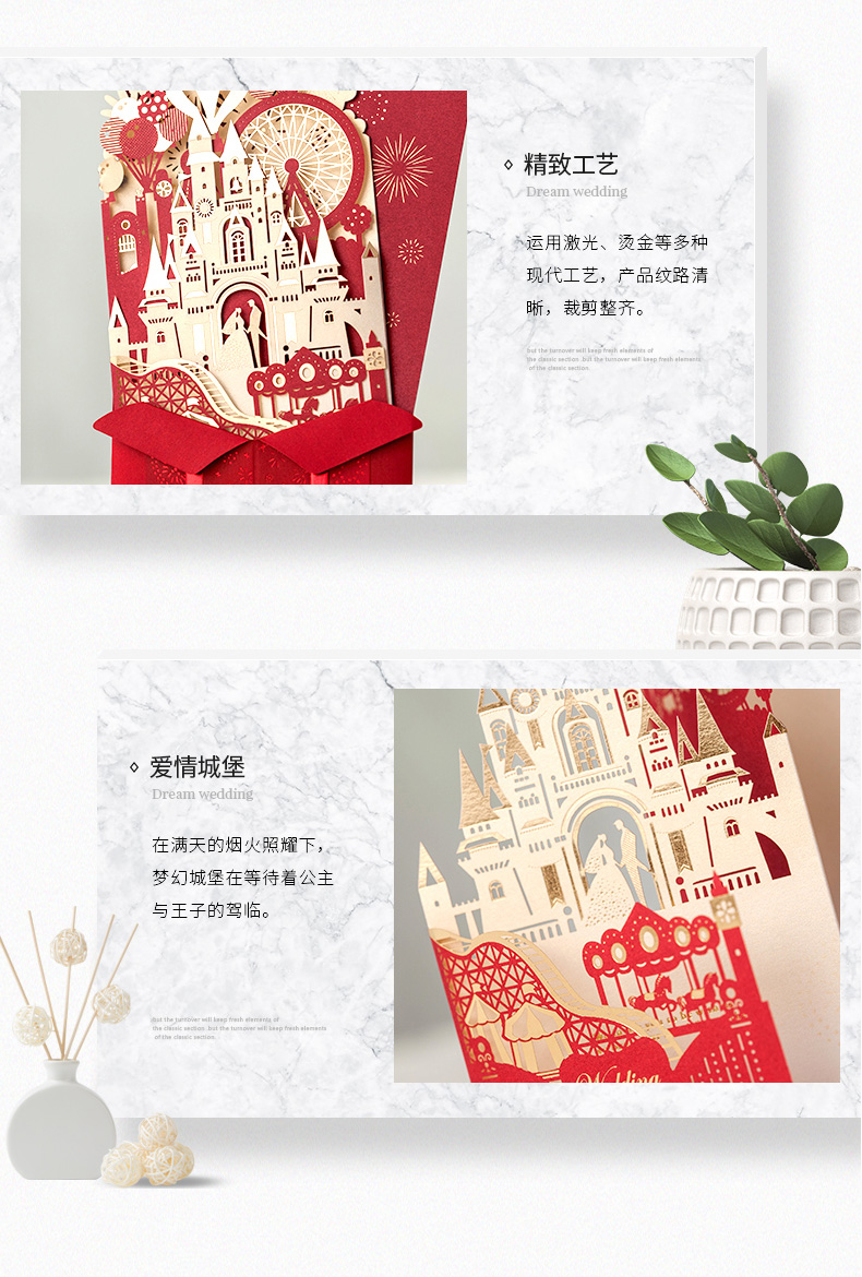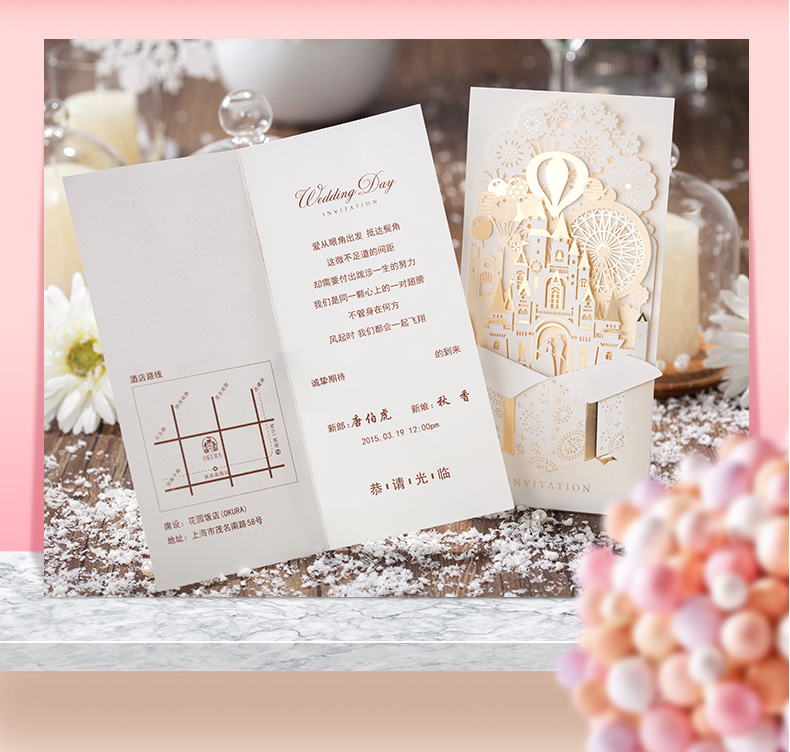 立体城堡烫金婚礼请柬