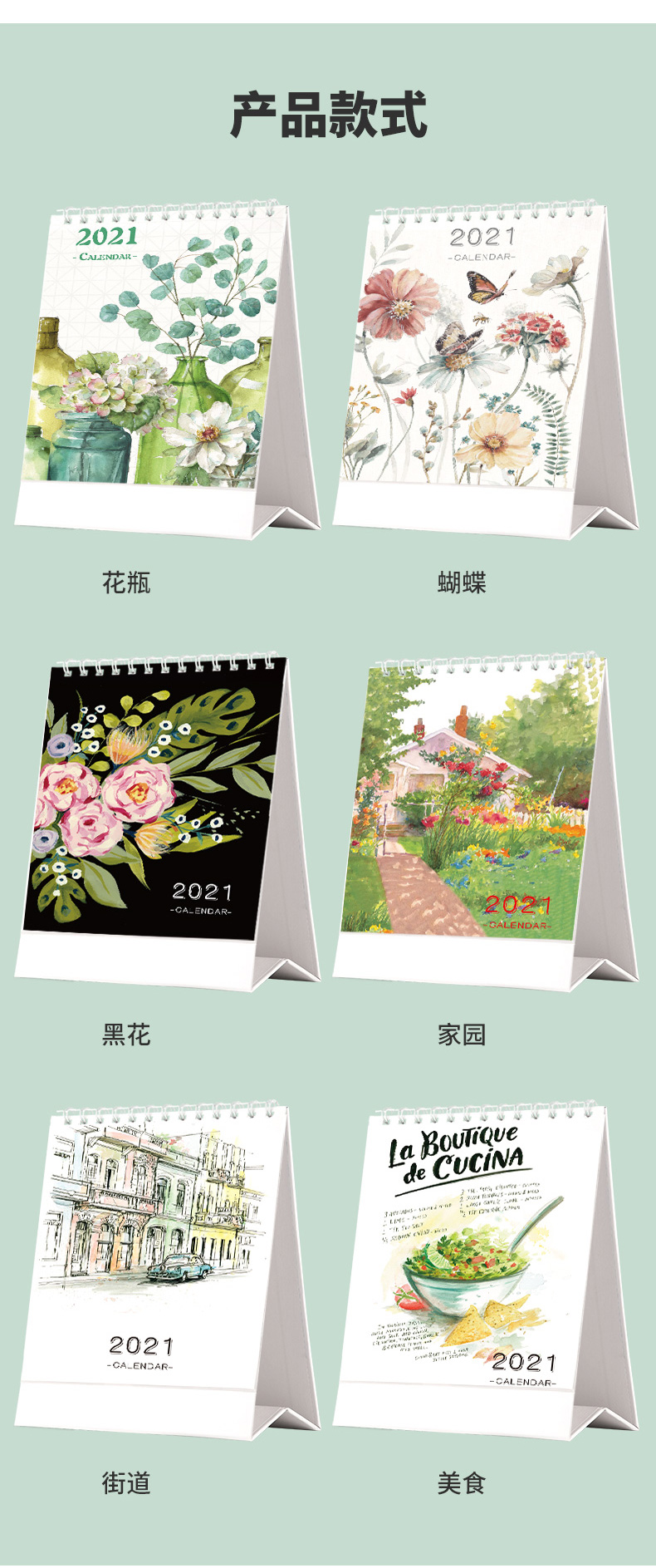 2021新款中国风插花朵装饰台历